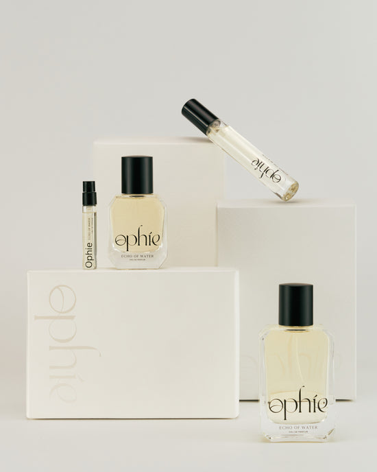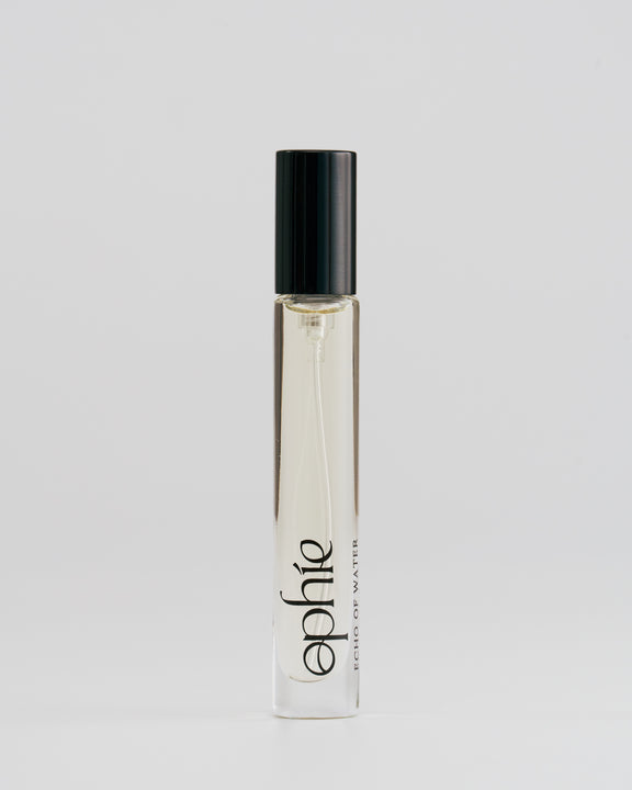 Echo of Water opens with bergamot, litsea cubeba, and a marine breeze that recalls salt air at dusk. Lotus, jasmine, and waterlily bloom in the heart — luminous and emotional, like light on waves. The base settles into ambroxan, driftwood, musk, and oakmoss, leaving a soft, nostalgic trace of the ocean that lingers on skin.