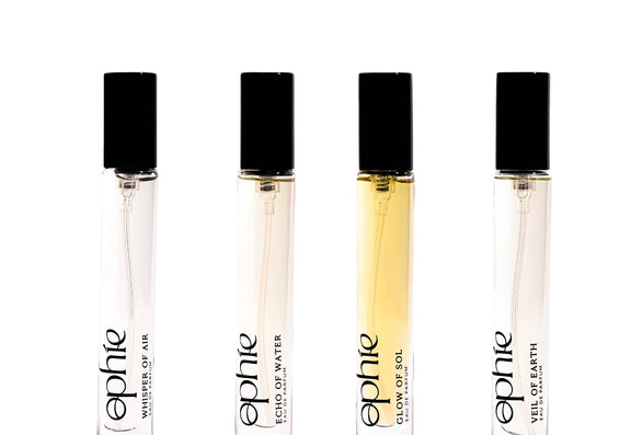 The Element Series is Ophie’s first collection — four perfumes inspired by nature’s eternal forces: Earth, Air, Water, and Fire. Each scent captures not only a landscape, but a feeling: grounding, fleeting, nostalgic, comforting. Together, they form a journey through stillness and movement, memory and rebirth — fragrances to wear like companions for the soul.